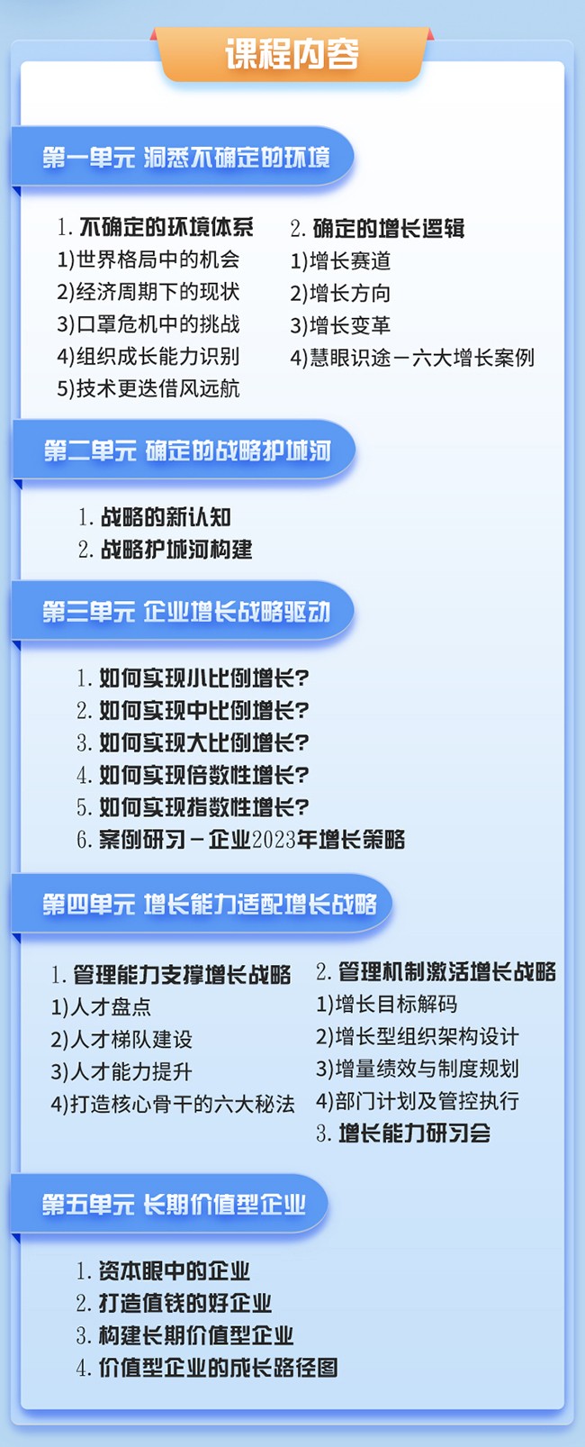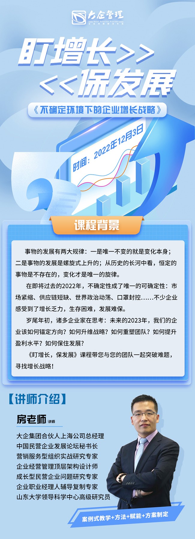 《盯增长,保发展》课程带您与您的团队一起突破难题,寻找增长战略!
